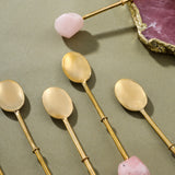 Make dessert-time extra sweet with our handcrafted rose quartz dessert spoons. The delightful pink of natural rose quartz is embellished with bright gold accents to elevate your table setting.