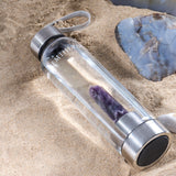 • The crystals in the bottle transfer energy to the water around the vial to improve water quality. Amethyst being a power healer has many health benefits like enhancing immune system, reducing headaches, regulating hormones, etc